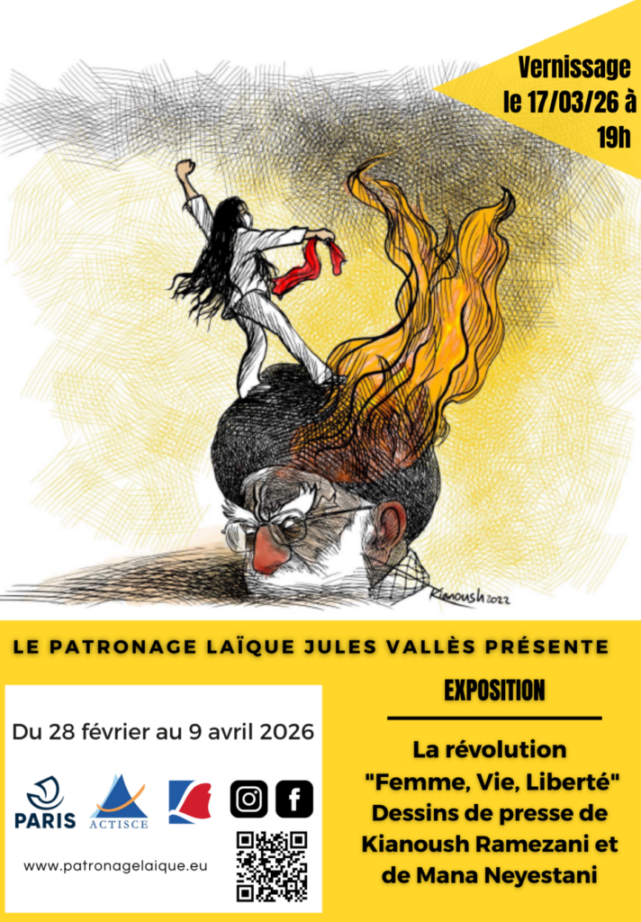Après le débat, un cocktail sera servi au sein de l’exposition du mouvement “femme, vie , liberté “, présentant des dessins de presse de Messieurs Ramezani et Neyestani. La commissaire scientifique Iris Farkhondeh se fera un plaisir de vous aider à la parcourir.