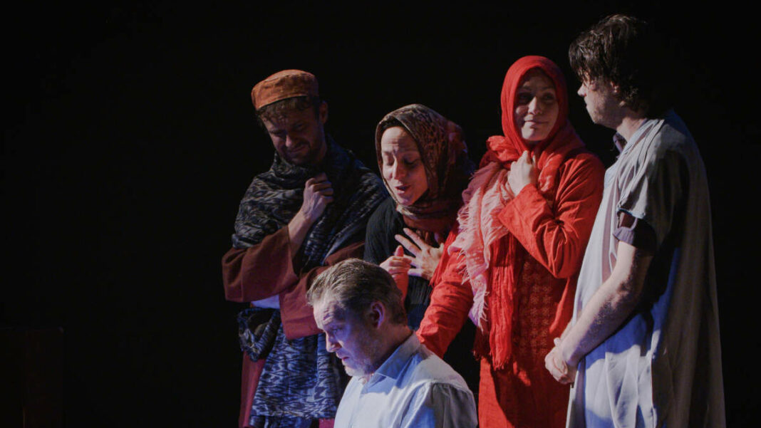 Transposer au théâtre un texte aussi puissant est le défi qu’a relevé avec succès le metteur en scène Luca Franceschi. Grâce à une scénographie très efficace signée Thierry Auzer et au talent polyvalent des 6 comédiens de la Compagnie des Asphodèles du Colibri, l’histoire des deux frères Rachel et Malrich se déroule en une succession de tableaux emmenant le spectateur de lieu en lieu sans jamais le perdre.