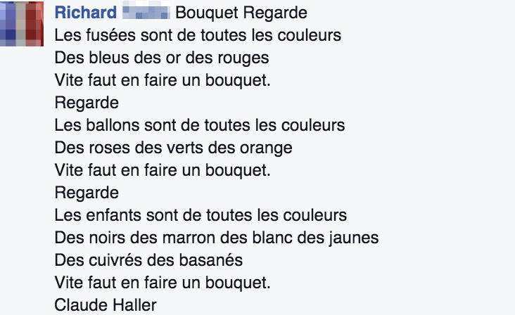 Nous avons invité lundi les fans de notre page Facebook à contribuer à cette journée en proposant leur texte dans les commentaires.