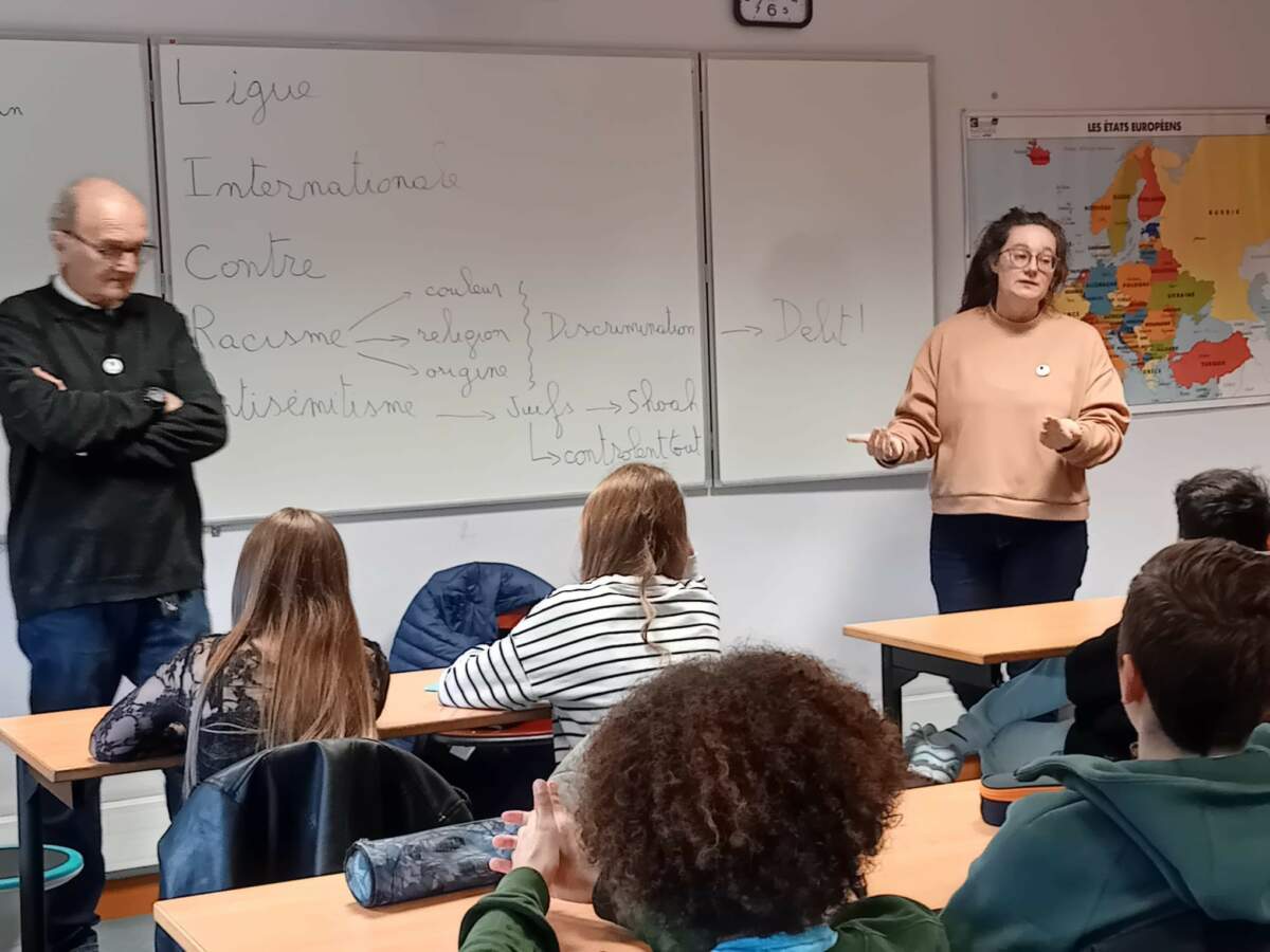Le jeudi 26 mars, au coeur de la Semaine d’Education et d’Actions contre le Racisme et l’Antisémitisme, la Licra Drôme est intervenue auprès d’une classe de 4e du collège Olympe de Gouges à Chatte.
